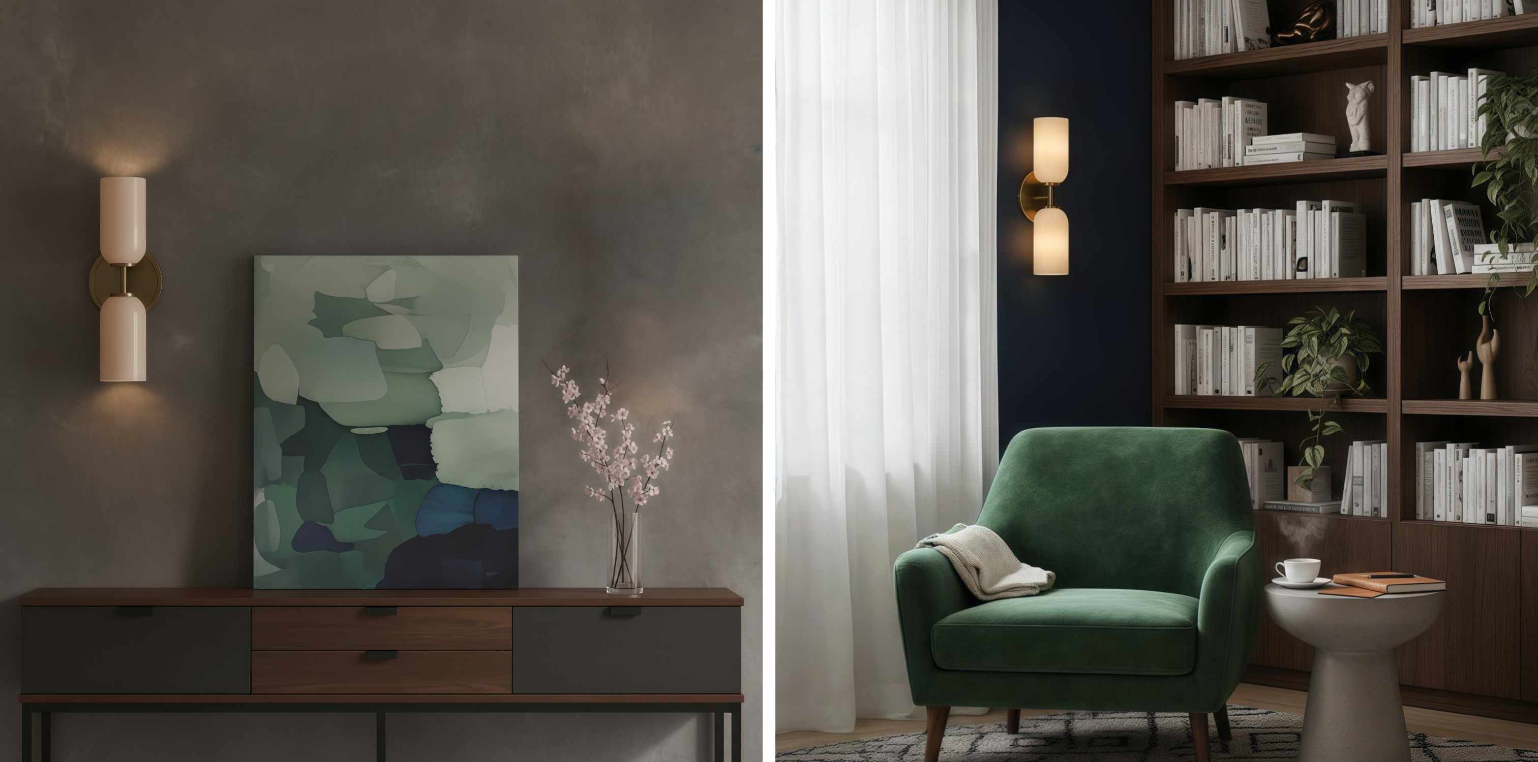 - Sanfte Beleuchtung: Glasschirme streuen ein warmes, ausgewogenes Umgebungslicht.