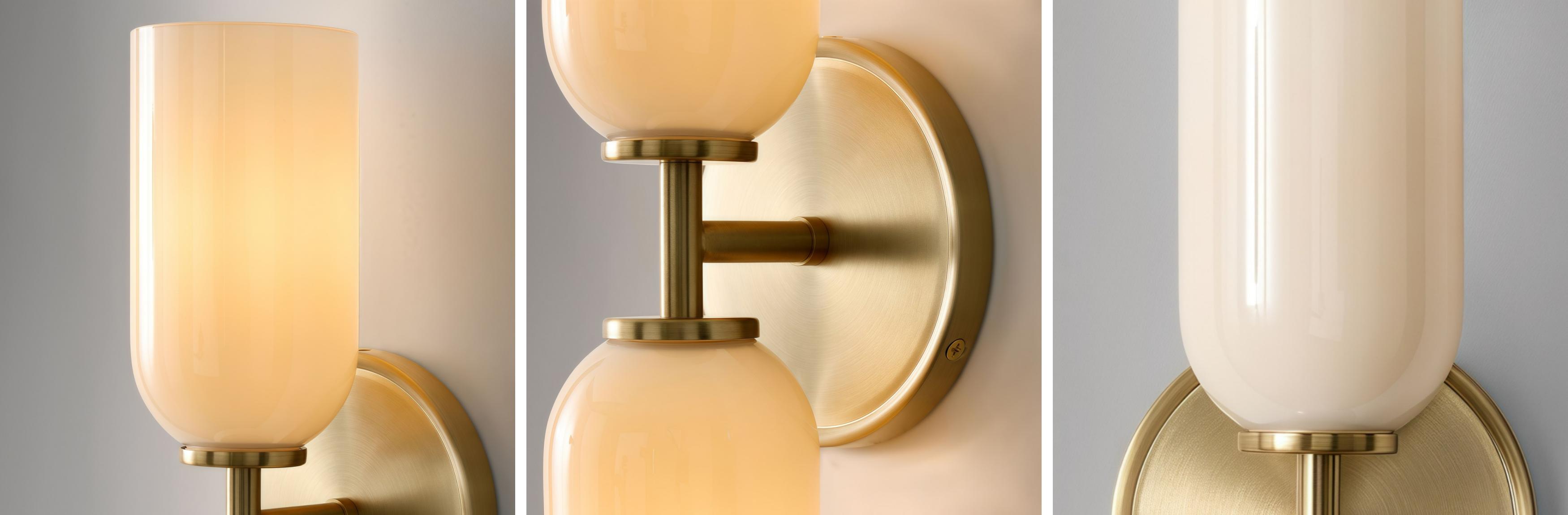 Diese 2-flammige Wandleuchte verfügt über eine moderne Silhouette mit getönten Glasschirmen, die das Licht mildern und ausbalancieren. Ihr Metallrahmen verleiht eine klare Struktur mit einer Mischung aus Mid-Century- und zeitgenössischem Stil. Feuchtigkeitsbewertet für flexible Nutzung, eignet sie sich für Badezimmer, Flure, Schlafzimmer und überdachte Außenbereiche.