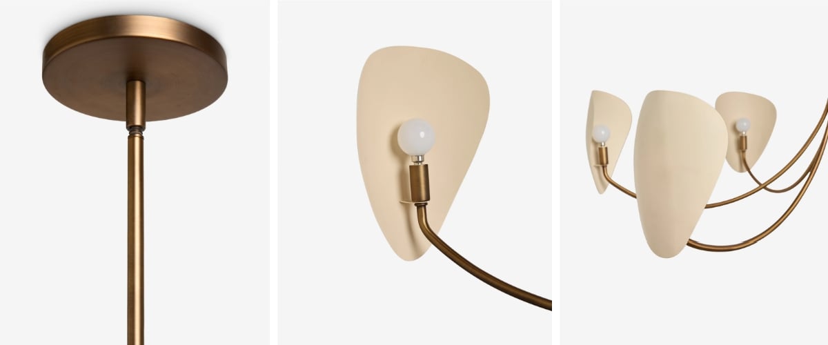 - Skulpturales Design: Geschwungene Arme und blütenblattförmige Schirme vereinen sich zu einer anmutigen, künstlerischen Silhouette.