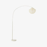 Lámpara de pie Lumifil Arc con pantalla de malla textil - Soporte metálico para iluminación ambiental suave en sala de estar