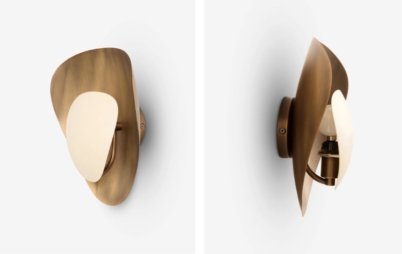 La lámpara de pared Shella es una luz escultórica que combina elegantemente una pantalla en forma de pétalo con una placa trasera suavemente contorneada; su pantalla metálica de tono crema descansa sobre un marco de latón antiguo. Diseñada para la versatilidad, funciona maravillosamente junto a la cama, en pasillos o realzando paredes de acento con su suave contraste y forma refinada.