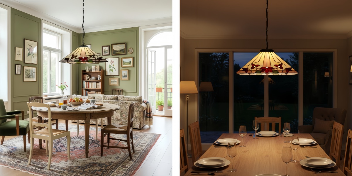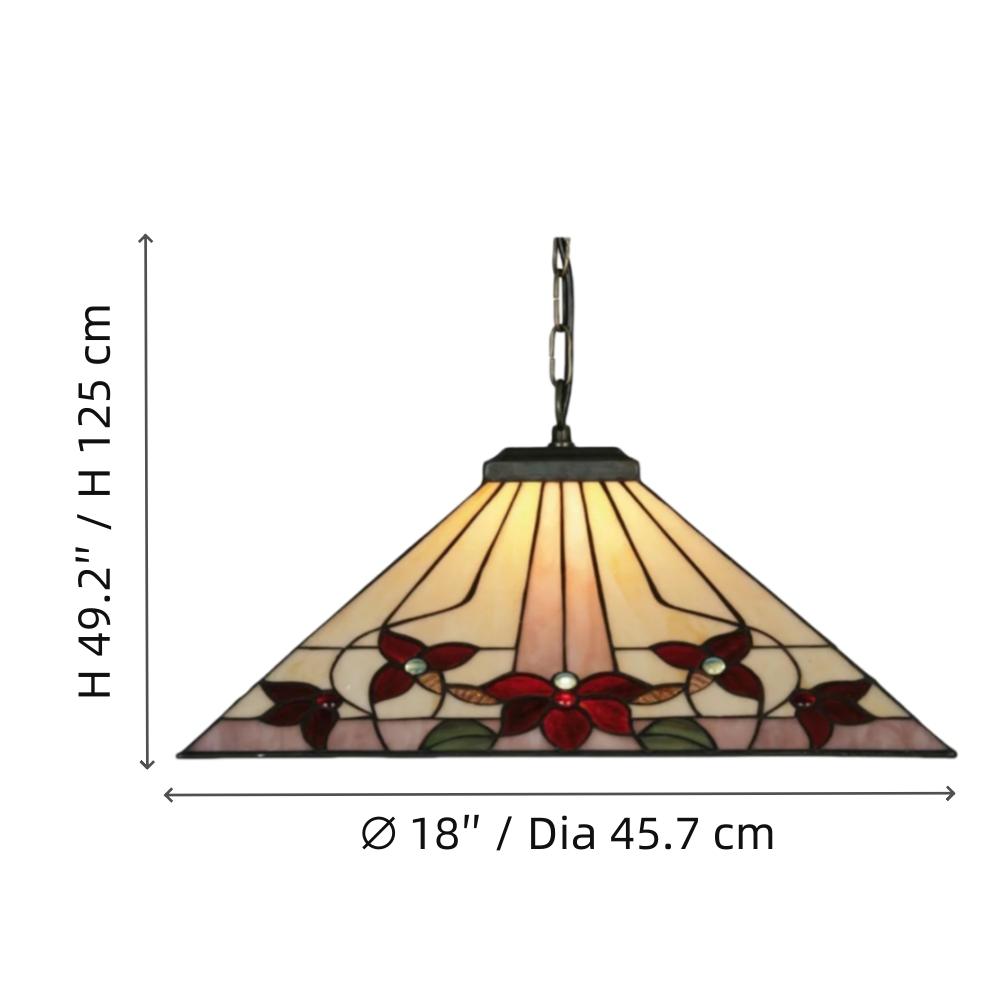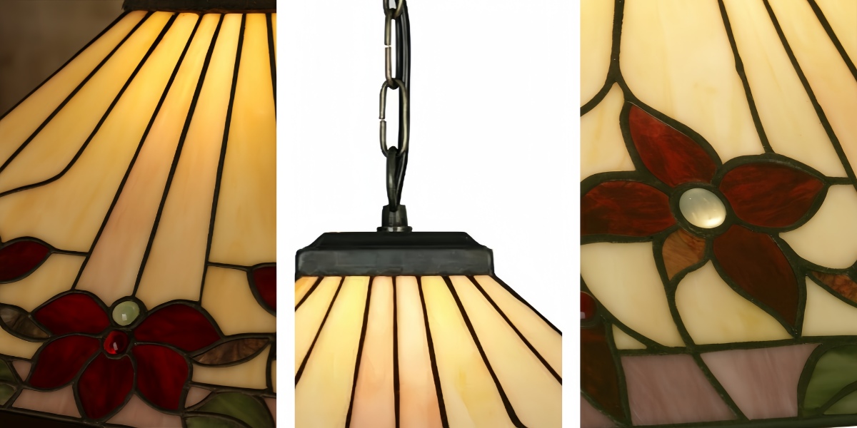 La lámpara colgante vintage con patrón TF Camillo presenta una pantalla de vidrio teñido hecha a mano con patrones detallados, que proyecta una luz ambiental cálida. Perfecta para dormitorios, pasillos, salas de estar o comedores, combina el encanto vintage con la elegancia artística.