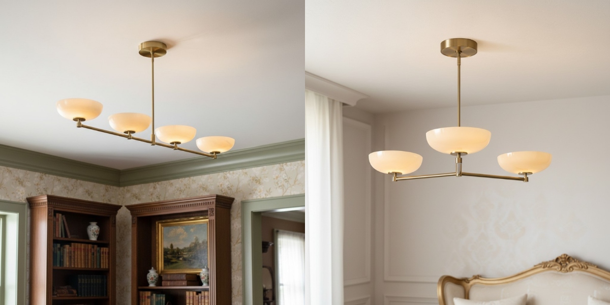 - Elegancia de Medio Siglo: Pantallas clásicas en forma de globo sobre brazos metálicos delgados para una estética atemporal.