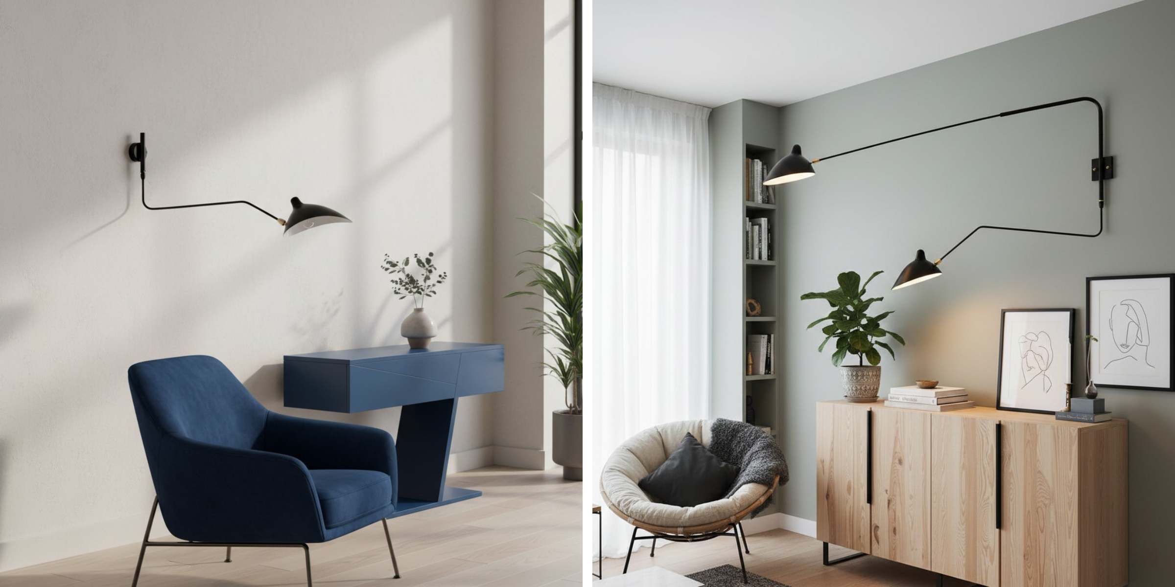 Verhoog je interieur met deze minimalistische design wandlamp, voorzien van een slanke gearticuleerde arm en een draaibare kap die gericht licht levert waar je het het meest nodig hebt. De verfijnde silhouet en moderne geometrie passen naadloos in hedendaagse, mid-century of Scandinavische ruimtes — ideaal voor woonkamers, slaapkamers, gangen of studieruimtes.