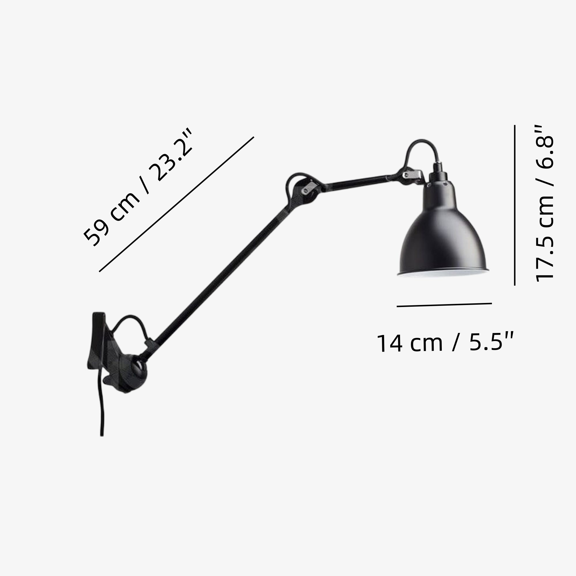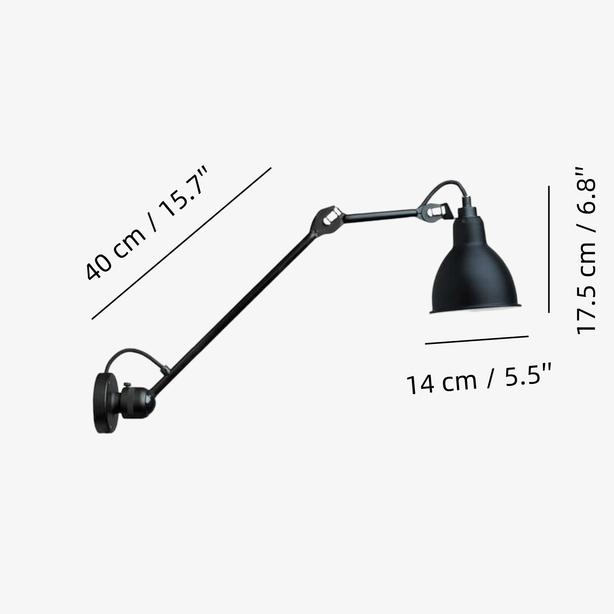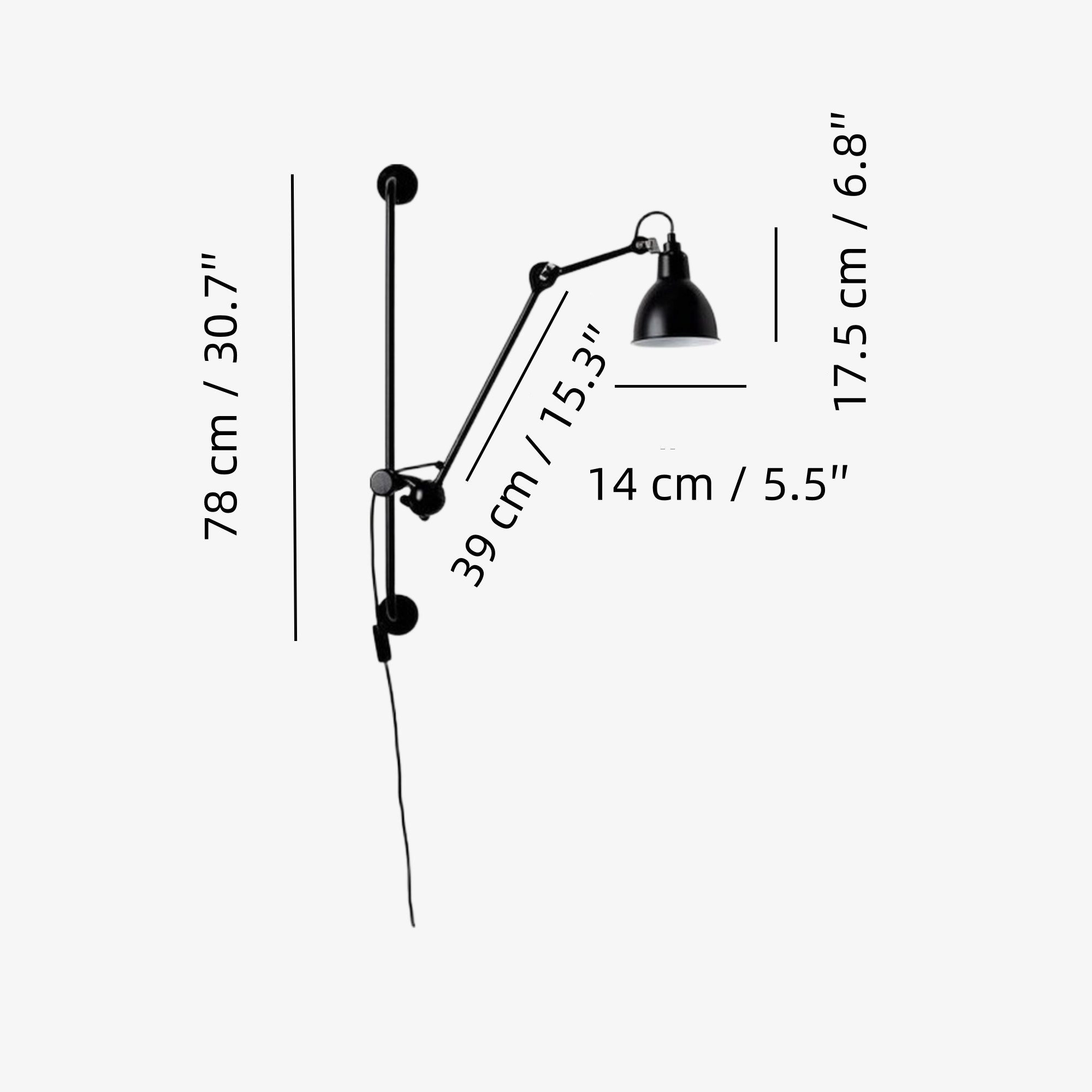Ervaar tijdloos industrieel design met deze verstelbare telescopische scharnierende wandlamp, voorzien van een draaibare kap en uitschuifbare arm die het licht precies daar richt waar het nodig is. Gemaakt van duurzaam metaal, verbetert deze veelzijdige wandlamp woonkamers, slaapkamers, studeerkamers en creatieve ruimtes met functionele elegantie en moderne karakter.