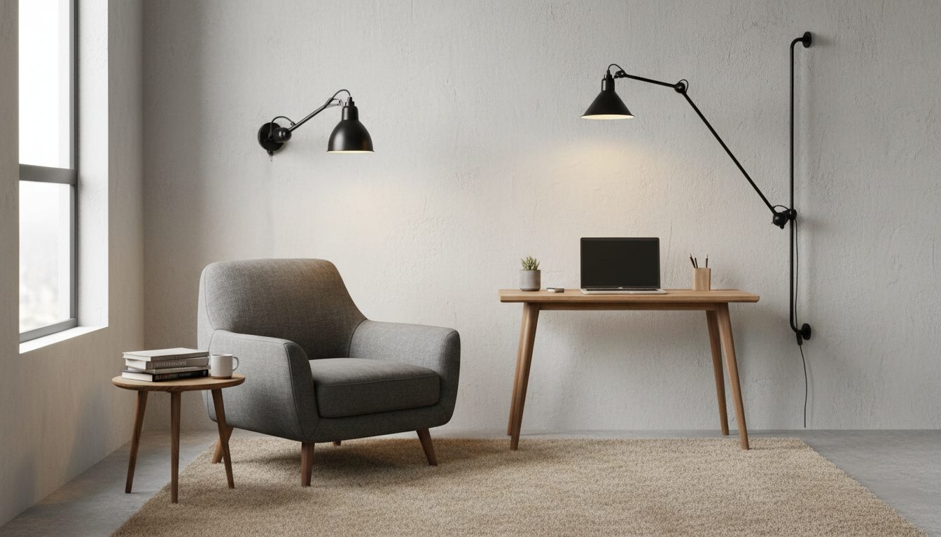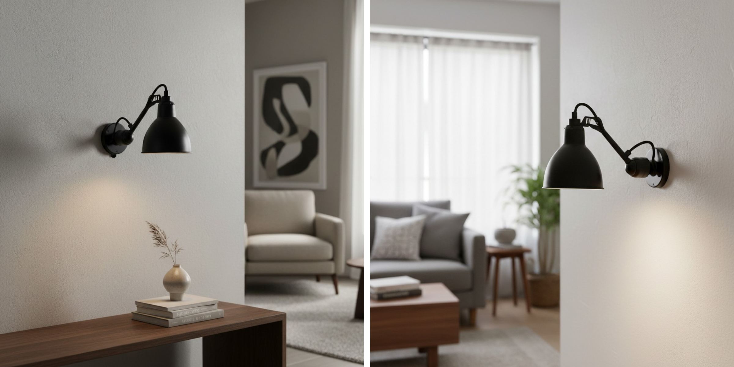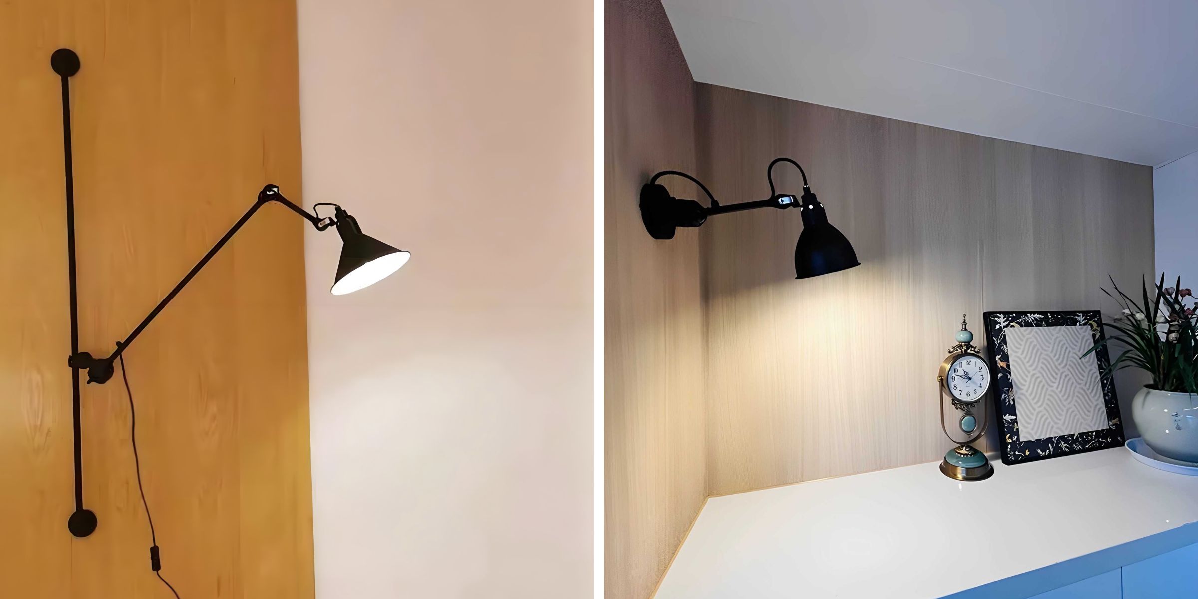 - Industriële Esthetiek: Toont een gedurfd industrieel ontwerp met een telescopische arm en draaibare kap, die functionele elegantie toevoegt aan moderne interieurs.