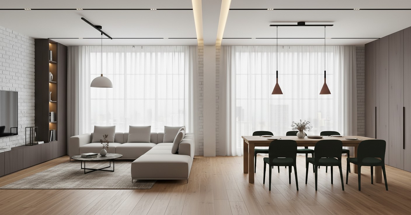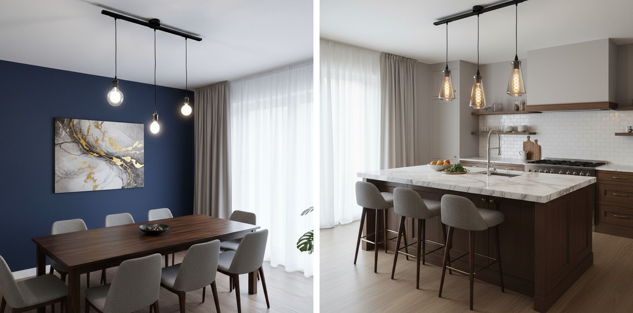 Dit verstelbare plafondrailsysteem biedt een flexibele manier om hanglampen te positioneren terwijl het een strak, modern uiterlijk behoudt. Het gestroomlijnde railontwerp gaat naadloos op in eigentijdse interieurs, waardoor verlichtingsindelingen zich aan verschillende behoeften kunnen aanpassen. Ideaal voor woonkamers, eetruimtes, keukens, studio's en commerciële ruimtes waar visuele balans en aanpasbaarheid belangrijk zijn.