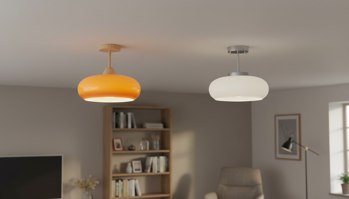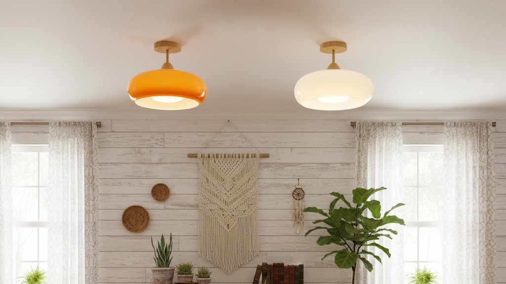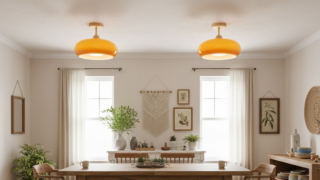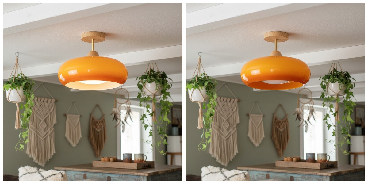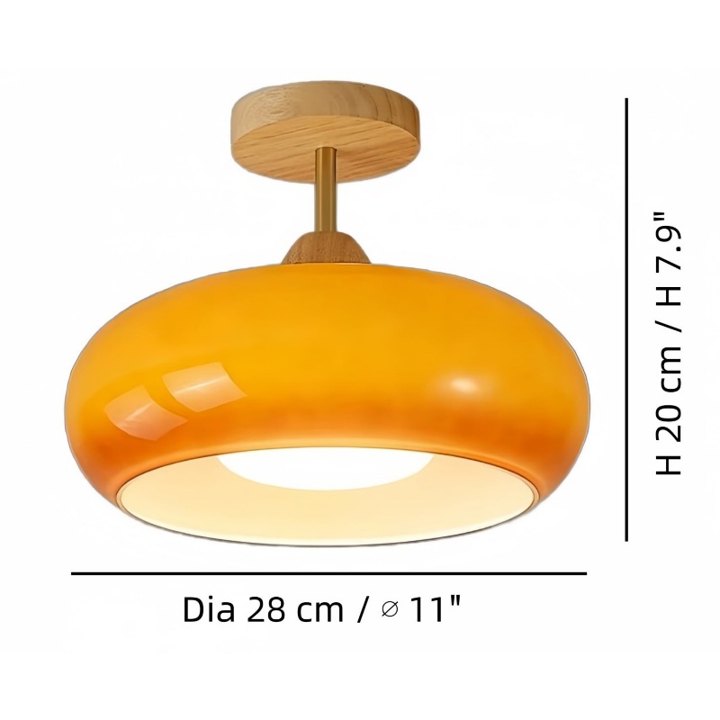 Deze door Bauhaus geïnspireerde plafondlamp combineert vintage verfijning met een moderne esthetiek. Met een unieke glasplaat in de vorm van een kaki en een voet van massief hout, voegt hij een onderscheidend accent toe aan elke kamer en creëert hij een gezellige en elegante ambiance.