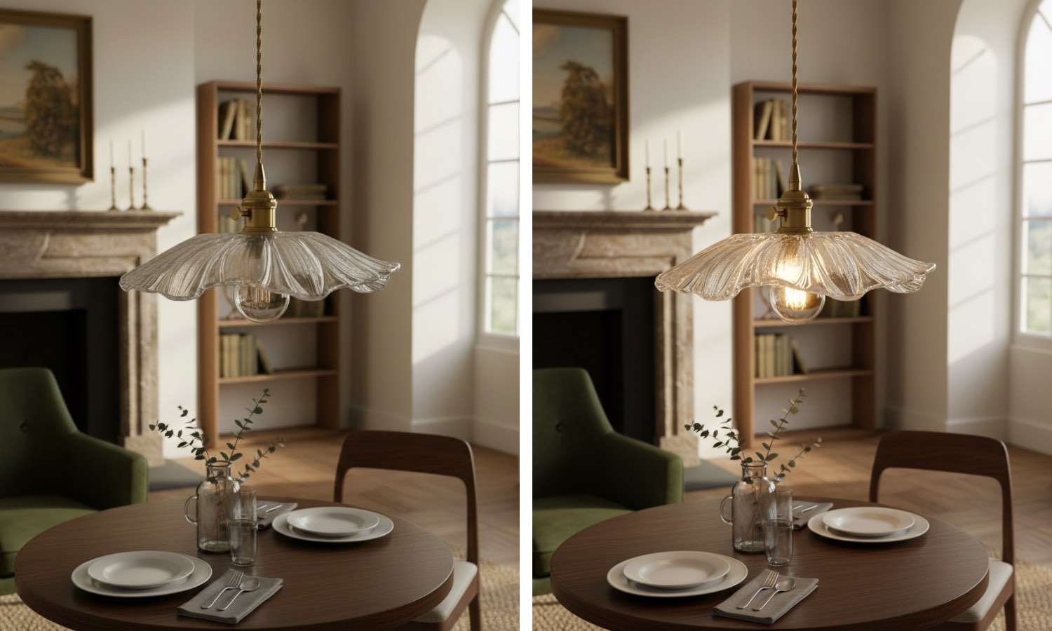 - Bloemmotief: Glazen kap in de vorm van een bloeiende bloem voor een vleugje natuur.