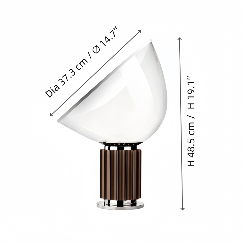De Bowlum tafellamp heeft een sculpturale komvorm met een verfijnde glazen kap die het licht naar boven richt. Het glazen ontwerp verzacht de verlichting en creëert een warme, sfeervolle gloed, waardoor het ideaal is voor woonkamers, slaapkamers of leeshoekjes met indirect licht.
