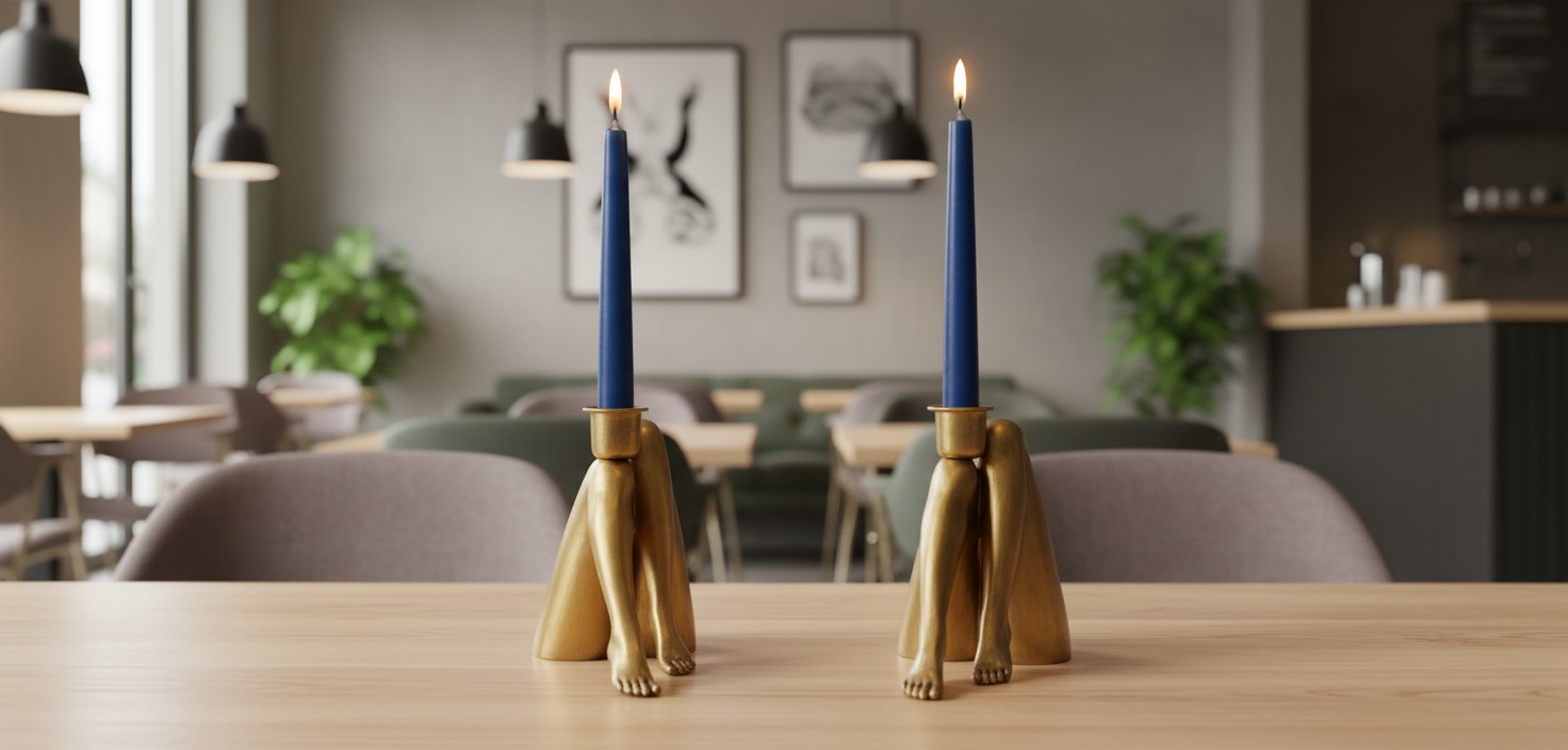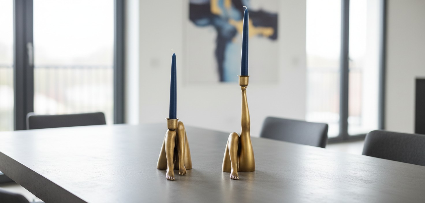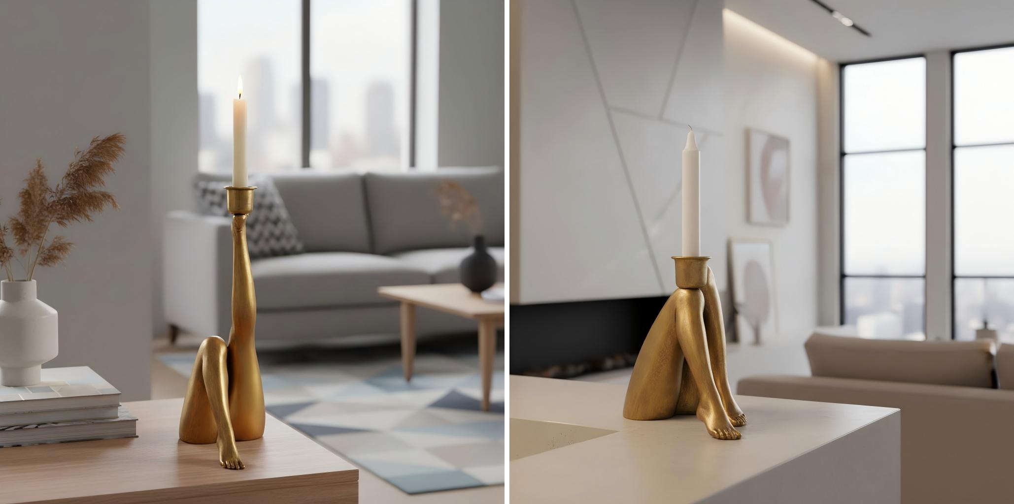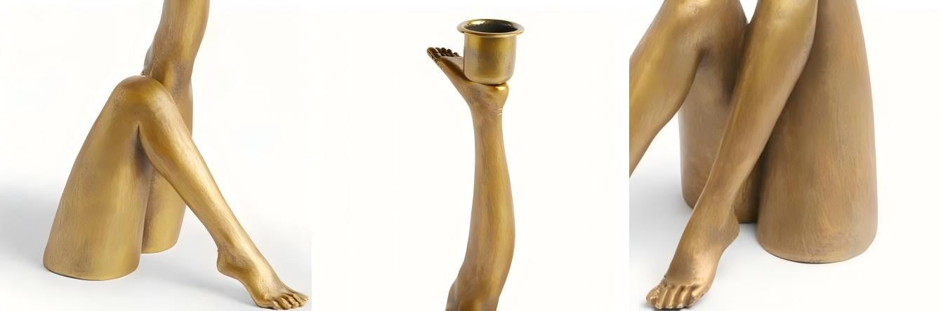 Verhoog je interieur met een betoverende sculpturale kandelaar die ook dienstdoet als artistiek accentstuk. Dit door benen geïnspireerde ontwerp brengt gedurfde visuele flair en creatieve energie in elke ruimte, waarbij figuratieve kunst wordt gecombineerd met functionele kaarsenpresentatie. Gemaakt van kwaliteitsresin met sculpturale details, biedt het plaats aan standaardkaarsen en verfraait het woonkamers, eettafels, entrees of slaapkamers.