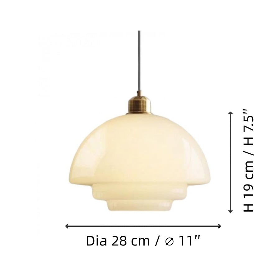 Deze Art Deco hanglamp heeft een zachte glazen kap. De gladde silhouet en zachte rondingen creëren een verfijnd middelpunt, terwijl het opaline-stijl glas het licht gelijkmatig verspreidt voor een warme, comfortabele gloed. Ideaal voor eetkamers, keukens of gangen, het brengt tijdloze elegantie en evenwichtige verlichting in zowel vintage als moderne interieurs.
