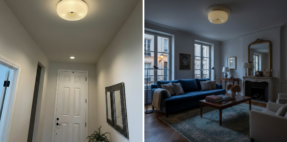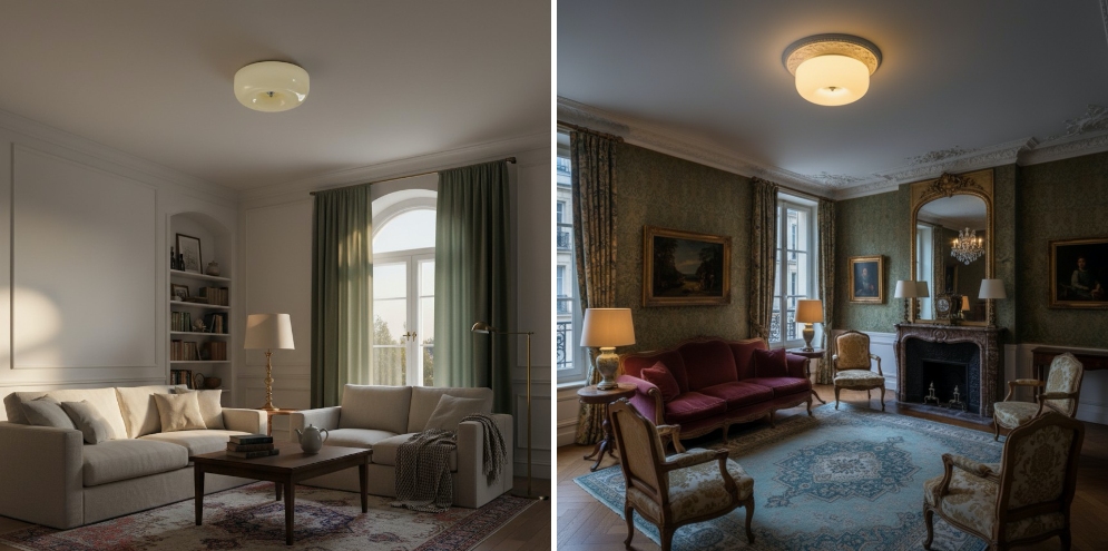 Deze door Art Deco geïnspireerde plafondlamp heeft een glad, gelaagd puddingvormig ontwerp dat sculpturale elegantie aan interieurruimtes toevoegt. De zachte krommen en gebalanceerde proporties zorgen voor een verfijnde visuele uitstraling, waardoor hij ideaal is voor woonkamers, slaapkamers, gangen of eetruimtes.