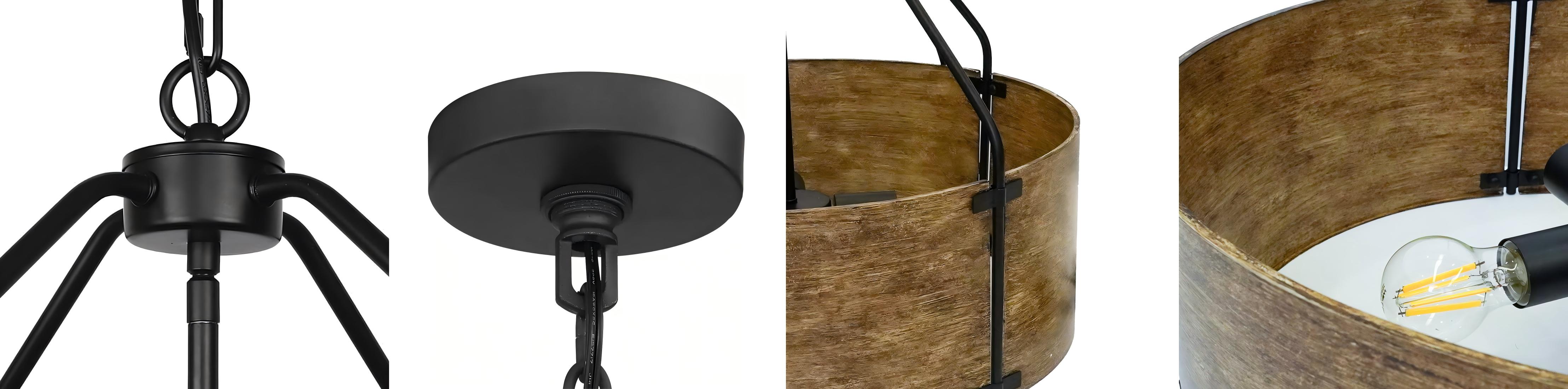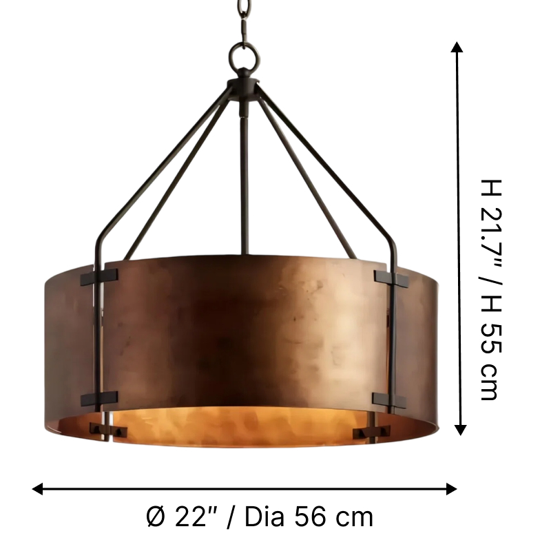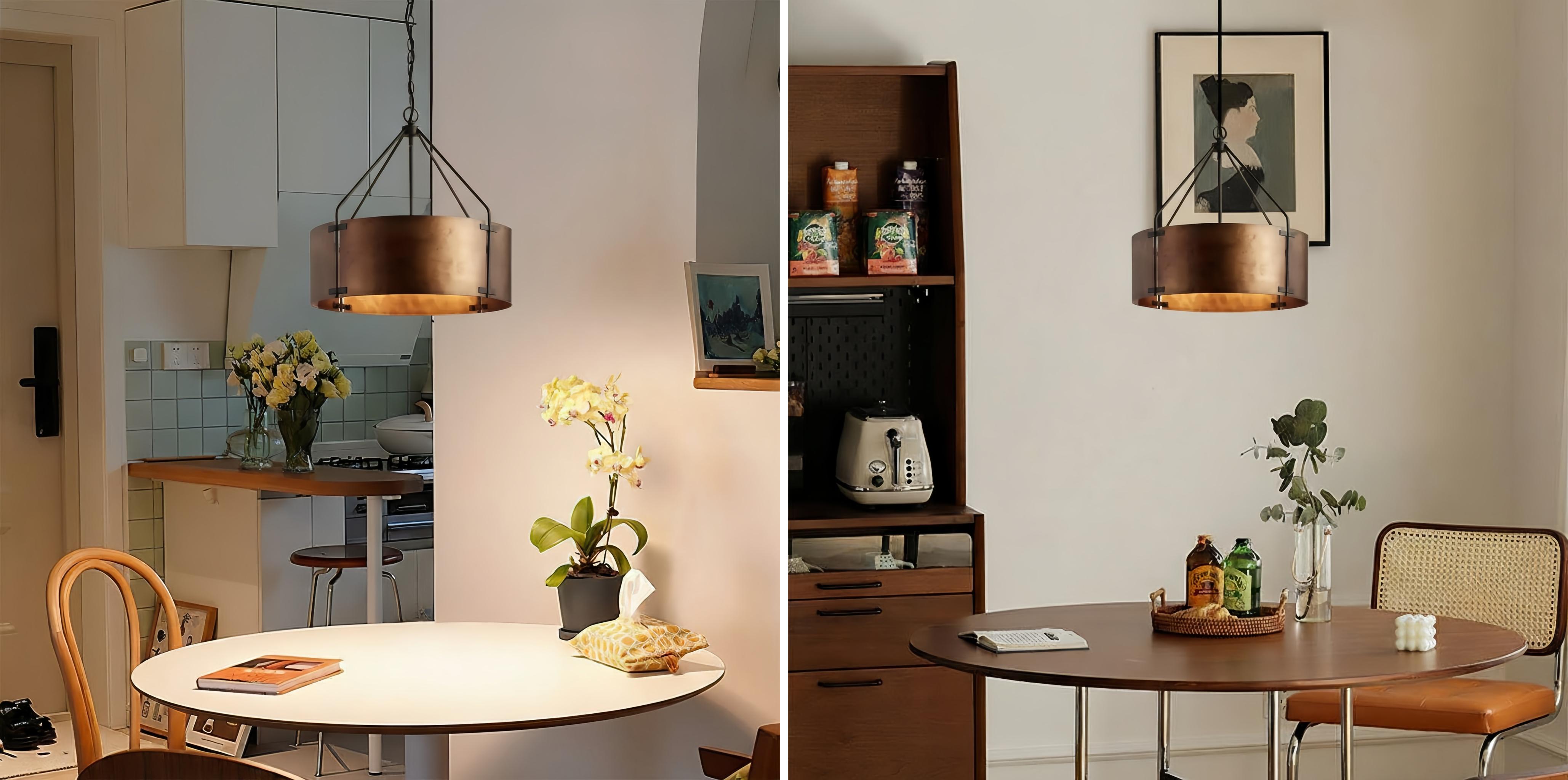 Deze industriële trommel hanglamp heeft een stevig metalen frame met een chique kap, die rustieke charme combineert met moderne designelementen. Elegant hangend aan het plafond, biedt het sfeerverlichting en taakverlichting voor eetkamers, keukeneilanden, woonruimtes, cafés en commerciële interieurs, en tilt elke inrichting naar een tijdloze uitstraling.