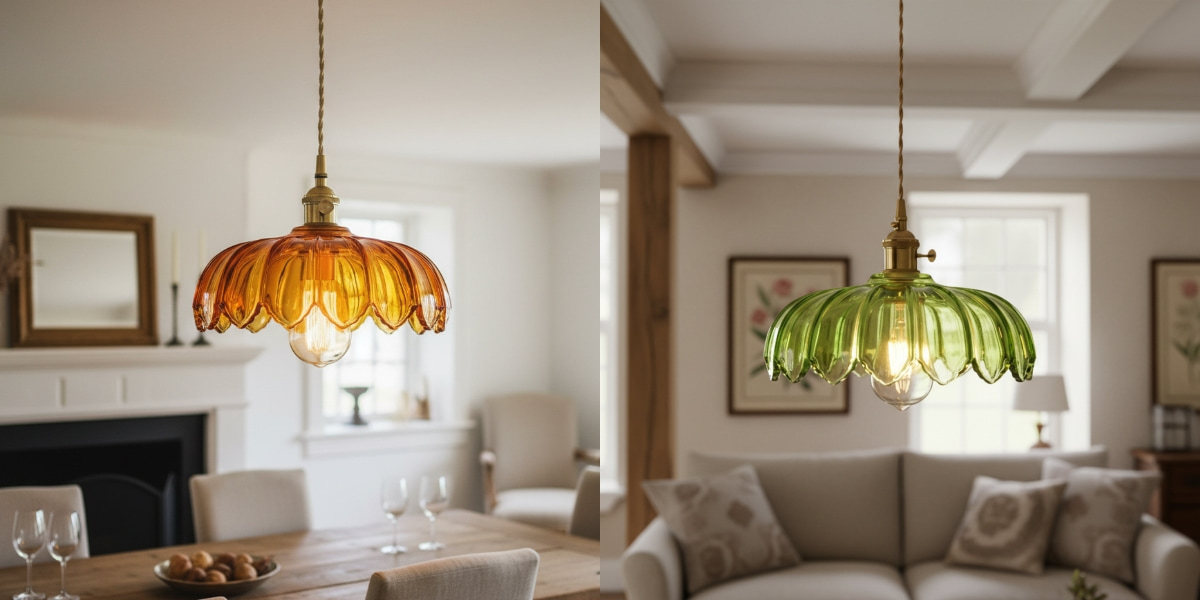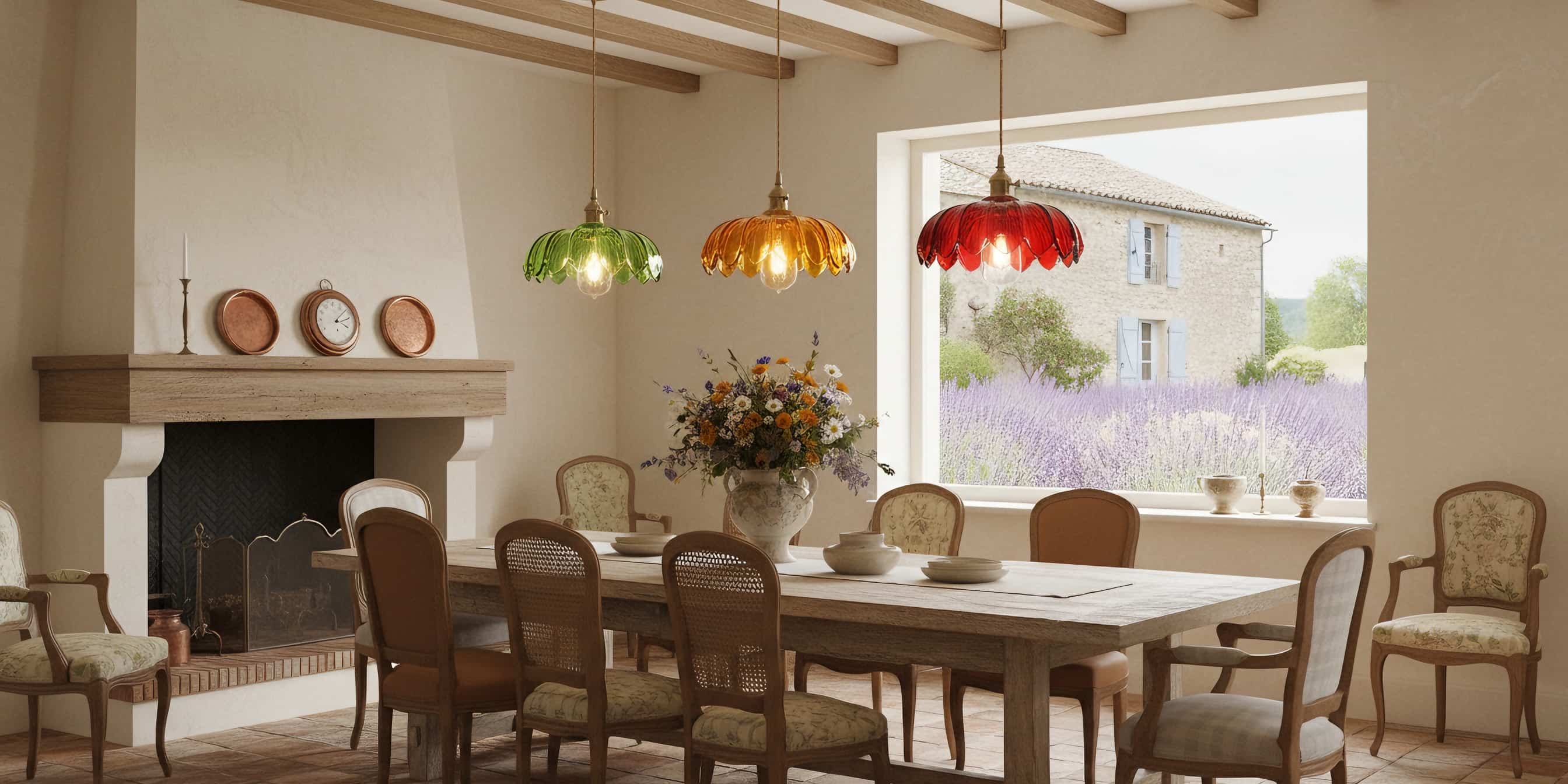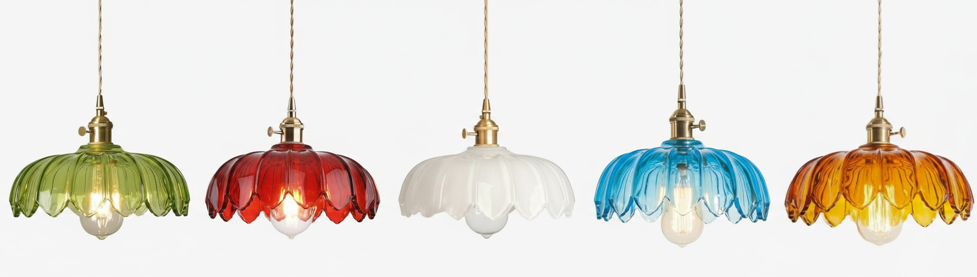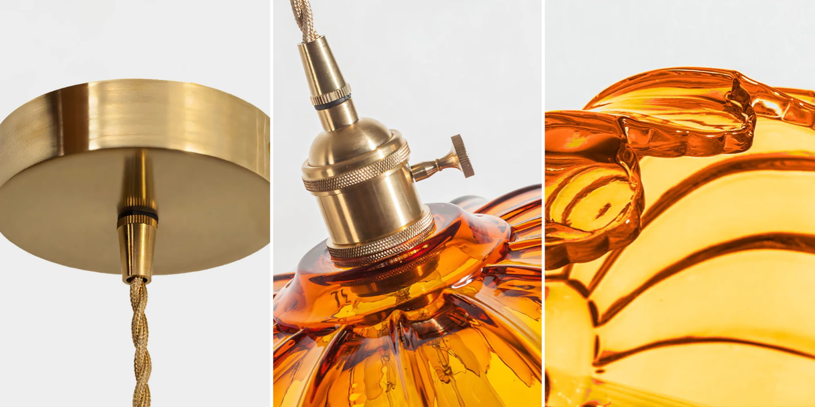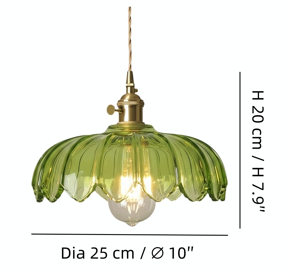 Deze tulpen-geïnspireerde glazen hanglamp heeft een delicate bloemknopsilhouet die warmte en karakter aan elke ruimte toevoegt. Door rustieke charme te combineren met retro elegantie, functioneert hij zowel als functioneel licht als decoratief accent. Ideaal voor eetruimtes, keukens, restaurants of terrassen, voegt het tijdloze stijl en visuele zachtheid toe.