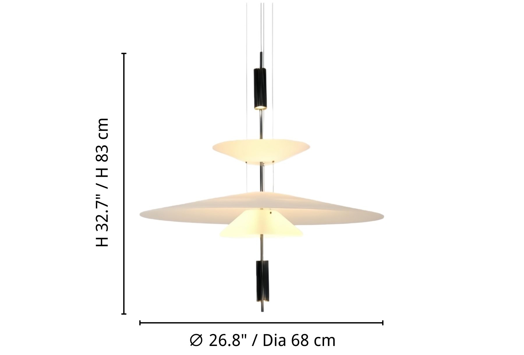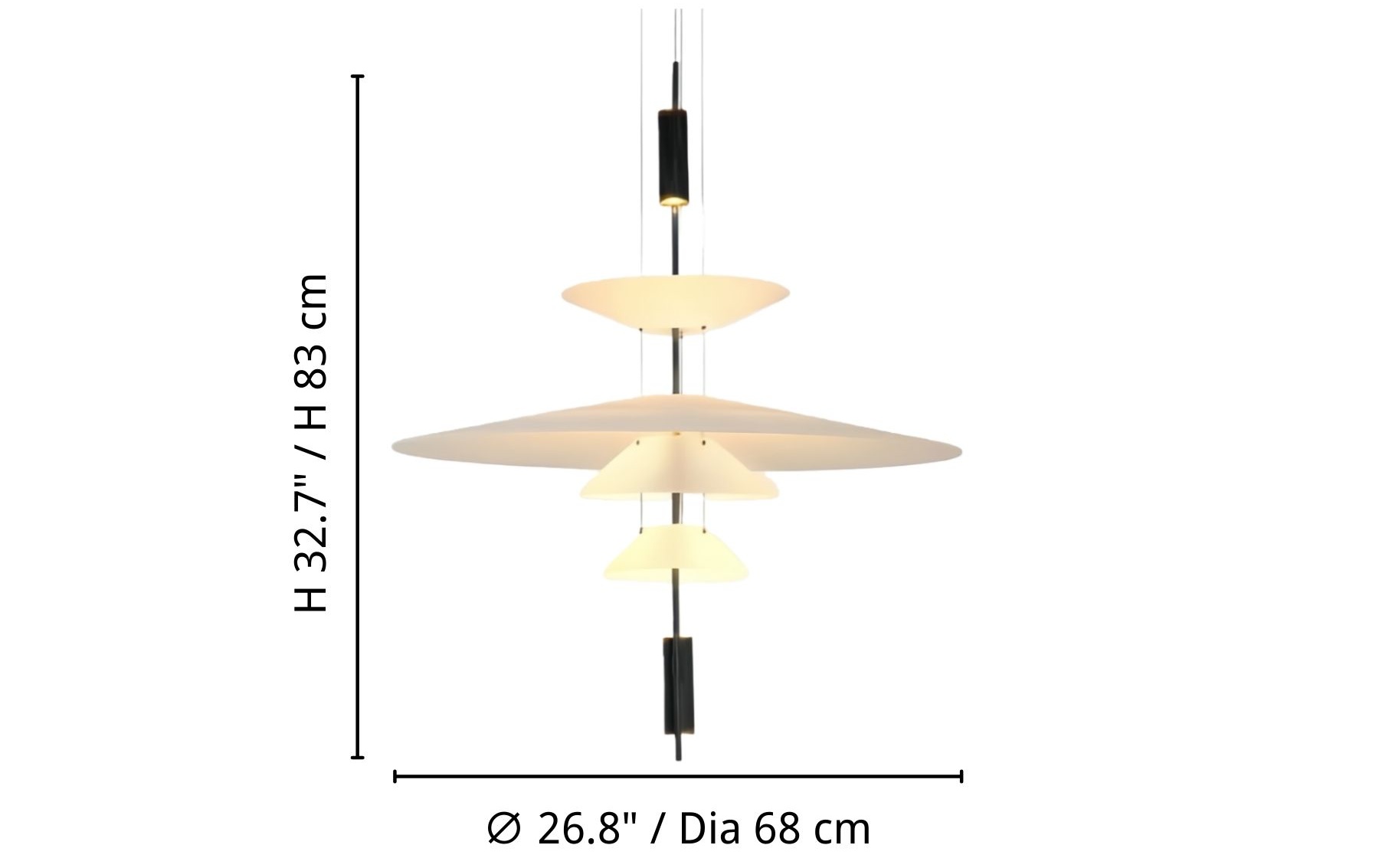 - 3 Lagen Groot: ∅ 26,8″ × H 32,7″ / Dia 68 cm × H 83 cm