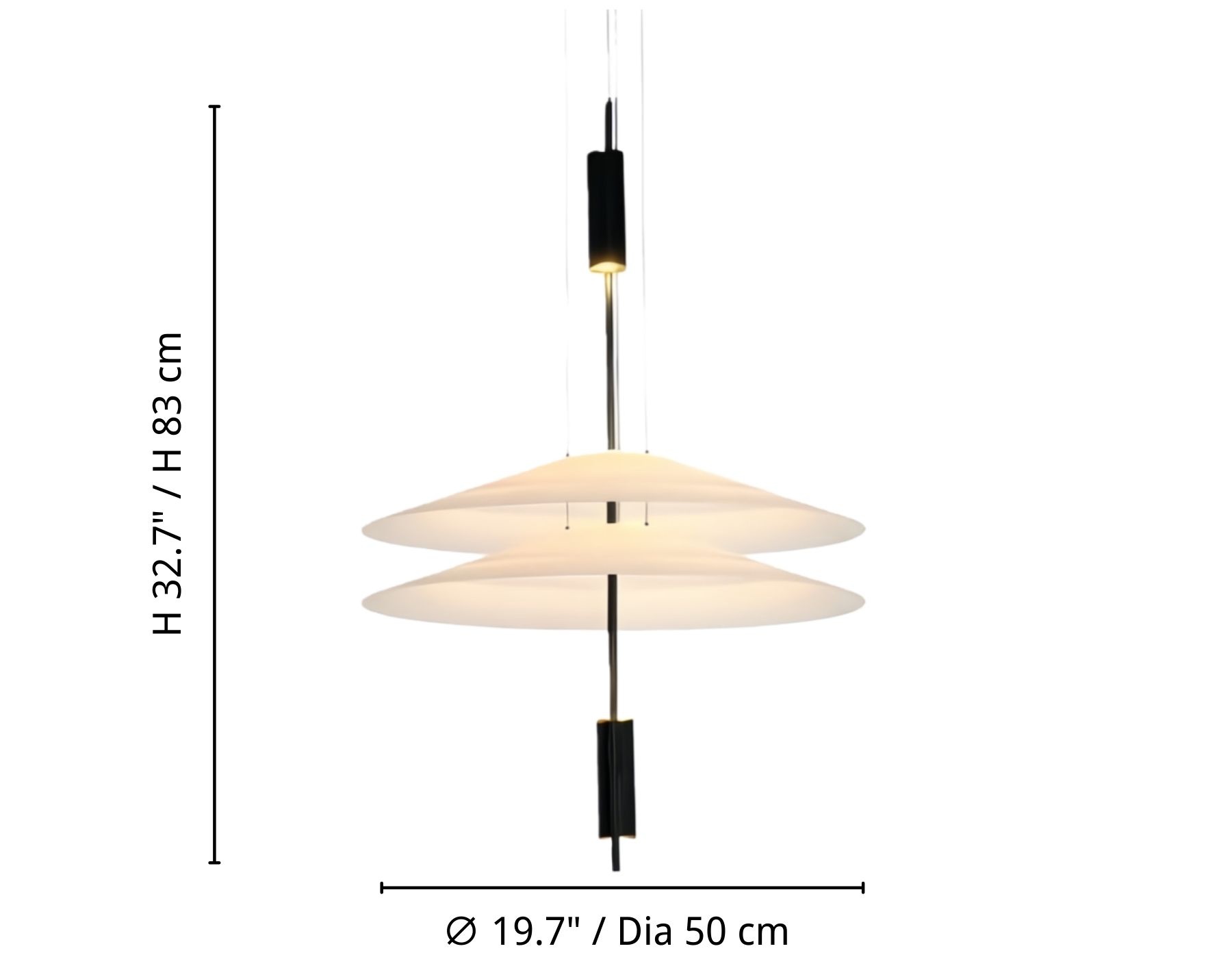 - 2 Lagen A: ∅ 19,7″ × H 32,7″ / Dia 50 cm × H 83 cm