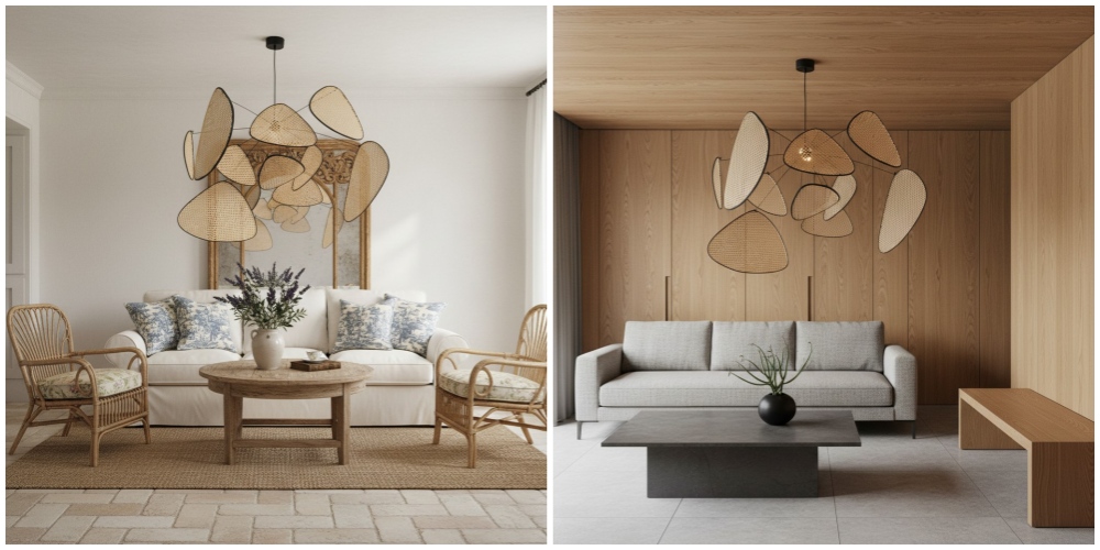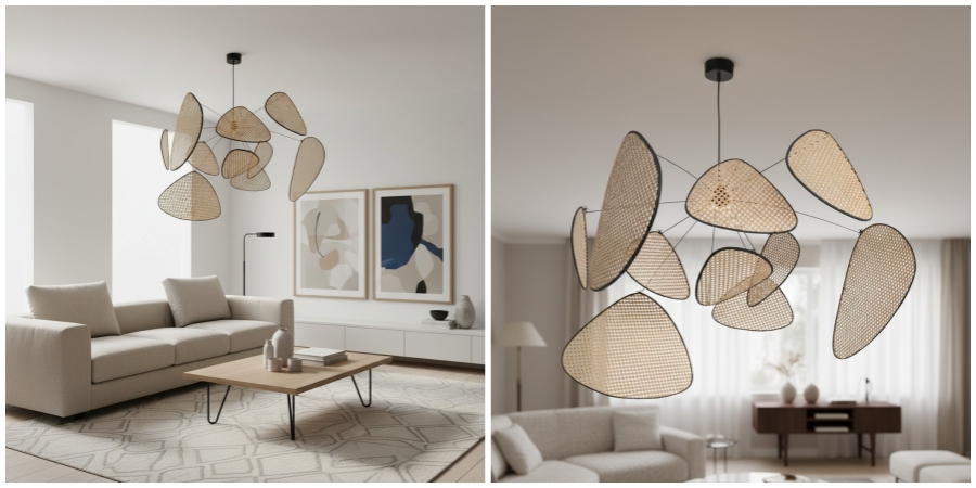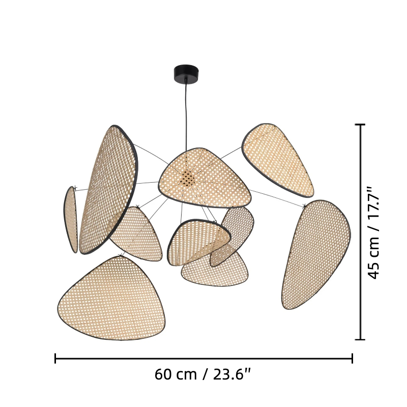Deze handgemaakte rotan cannage kroonluchter combineert natuurlijke gevlochten texturen met een verstelbaar metalen frame, wat een verfijnde hanglamp creëert die LED-verlichting verzacht en verspreidt. Zijn luchtige silhouet en ambachtelijke details zorgen voor organische warmte en visuele interesse, en tillen eetruimtes, keukens, woonruimtes en horecainterieurs naar een hoger niveau met ontspannen elegantie.