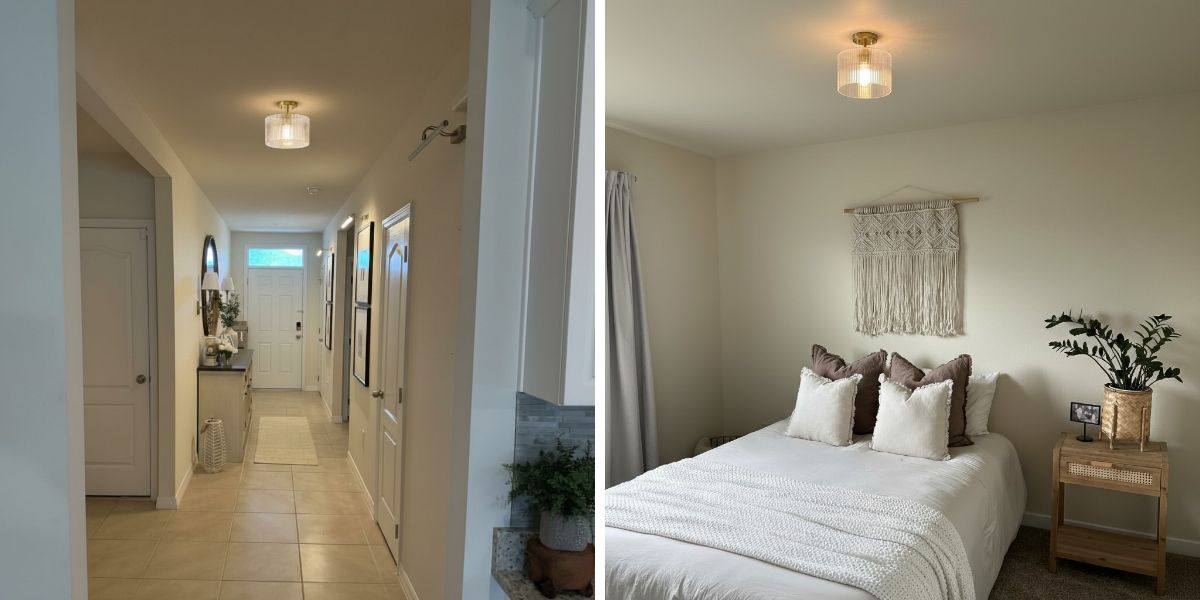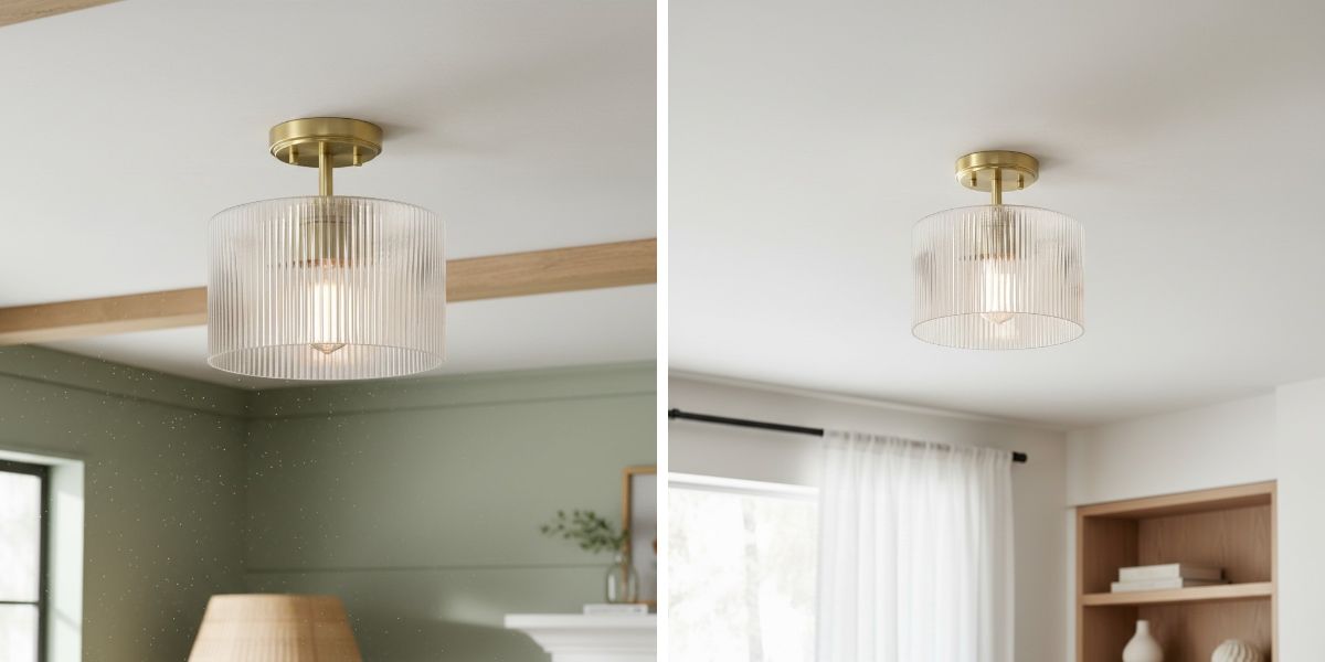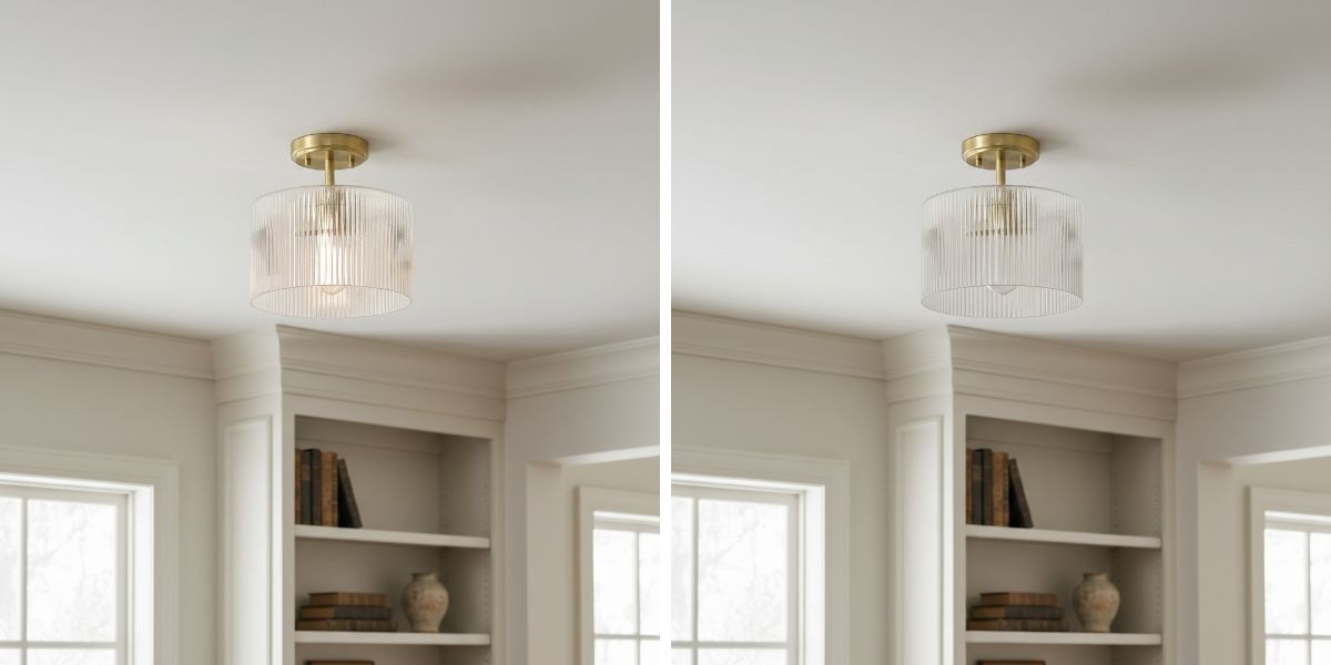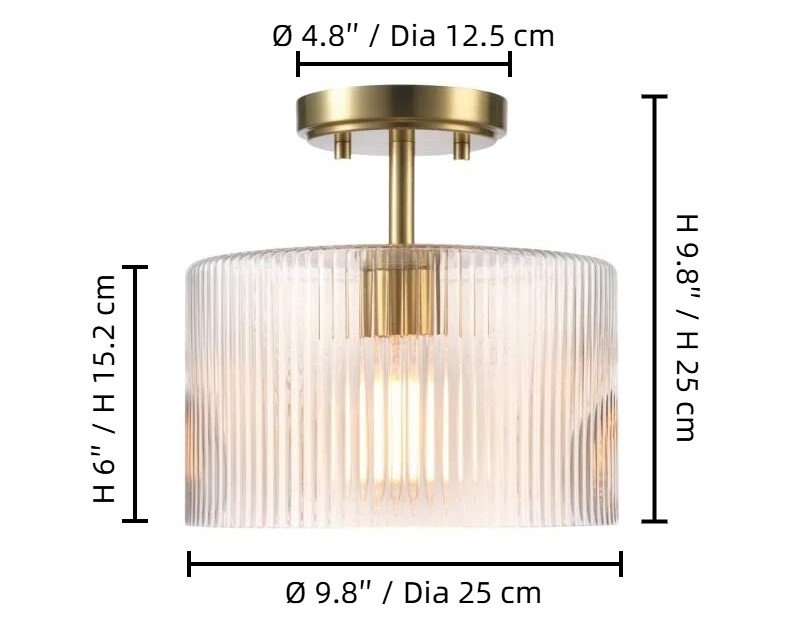De Rivora Farmhouse Ribbed Glass Semi Flush Ceiling heeft een geribbelde glazen kap die het licht zacht verspreidt en zo een warme, uitnodigende sfeer creëert. Het boerderij-ontmoet-moderne ontwerp voegt visuele diepte toe en complimenteert slaapkamers, keukens, gangen en woonruimtes met rustieke charme en hedendaagse elegantie.