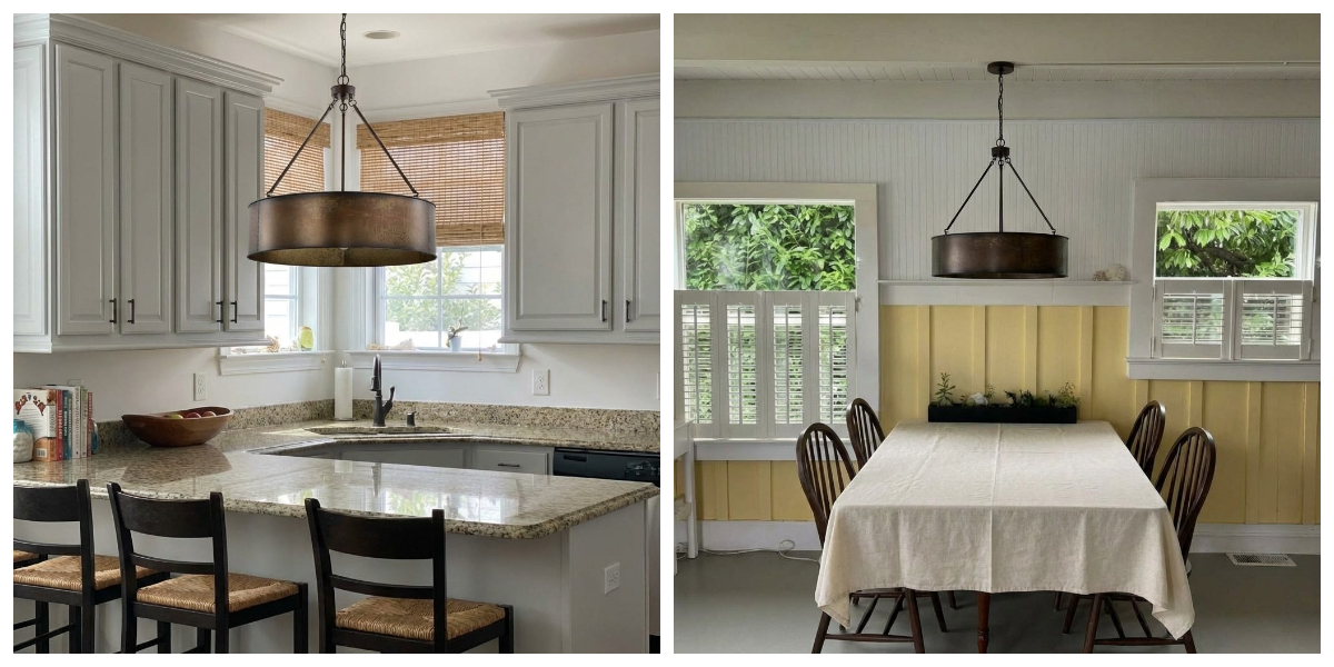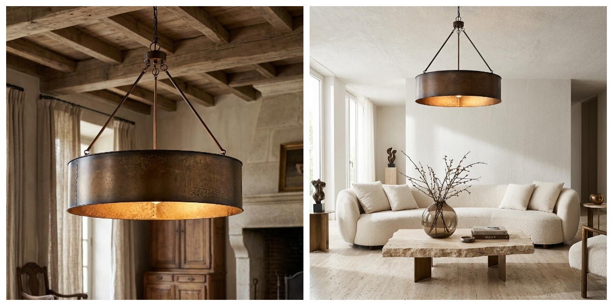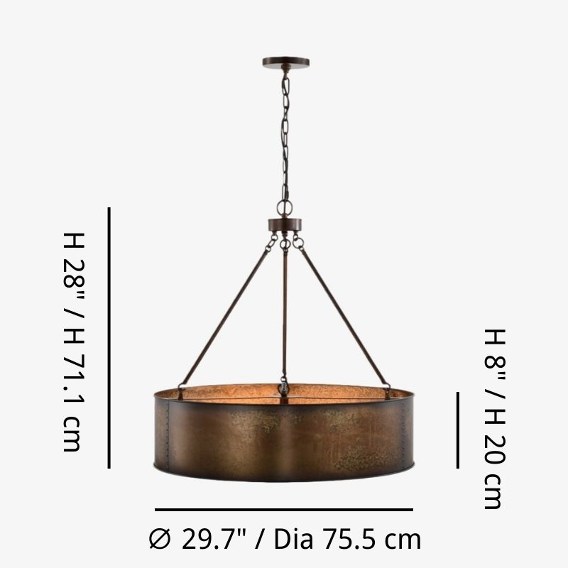 Breng robuuste charme in huis met deze industriële hanglamp, voorzien van een vintage-geïnspireerde drumkap met subtiele patina en opgerolde randdetails. De getextureerde metalen afwerking en gedurfde silhouet creëren visuele interesse terwijl ze warme sfeerverlichting verspreiden, ideaal voor eetruimtes, keukens of entrees.