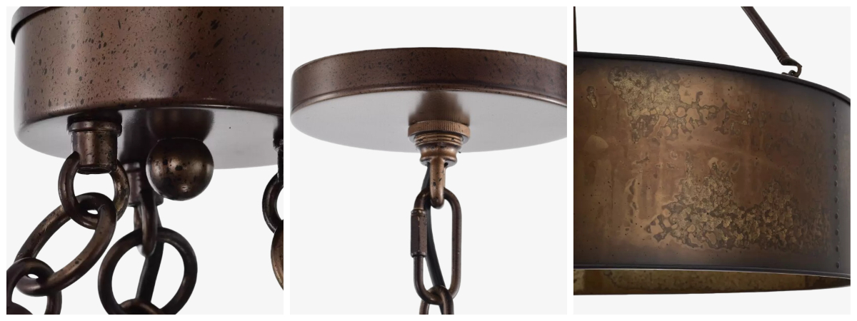 - Industriële patina: Vintage brons/ messing afwerking voegt robuust karakter toe