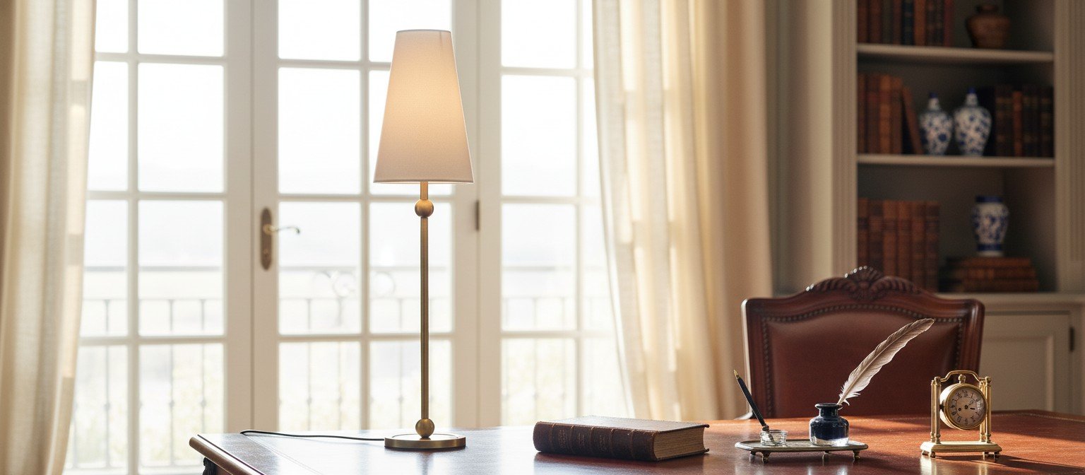 Serena Iron Table Lamp – Clean Lines and a Soft Linen Shade for Home Office or Bedside