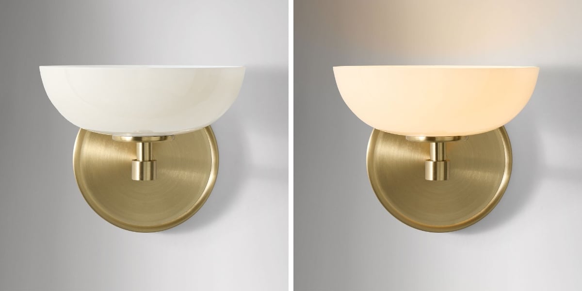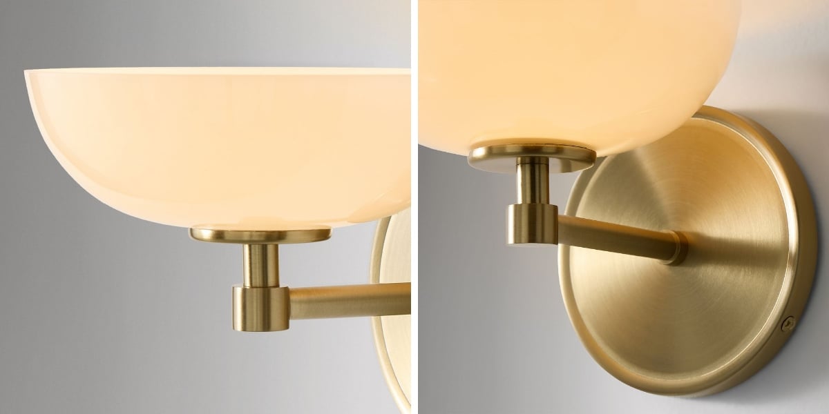 This modern wall sconce features a sculptural glass shade and sleek metal base, creating soft ambient light ideal for bedrooms, hallways, or bathrooms. Its compact design and up-or-down mounting offer flexible styling for any contemporary space.