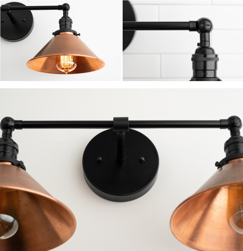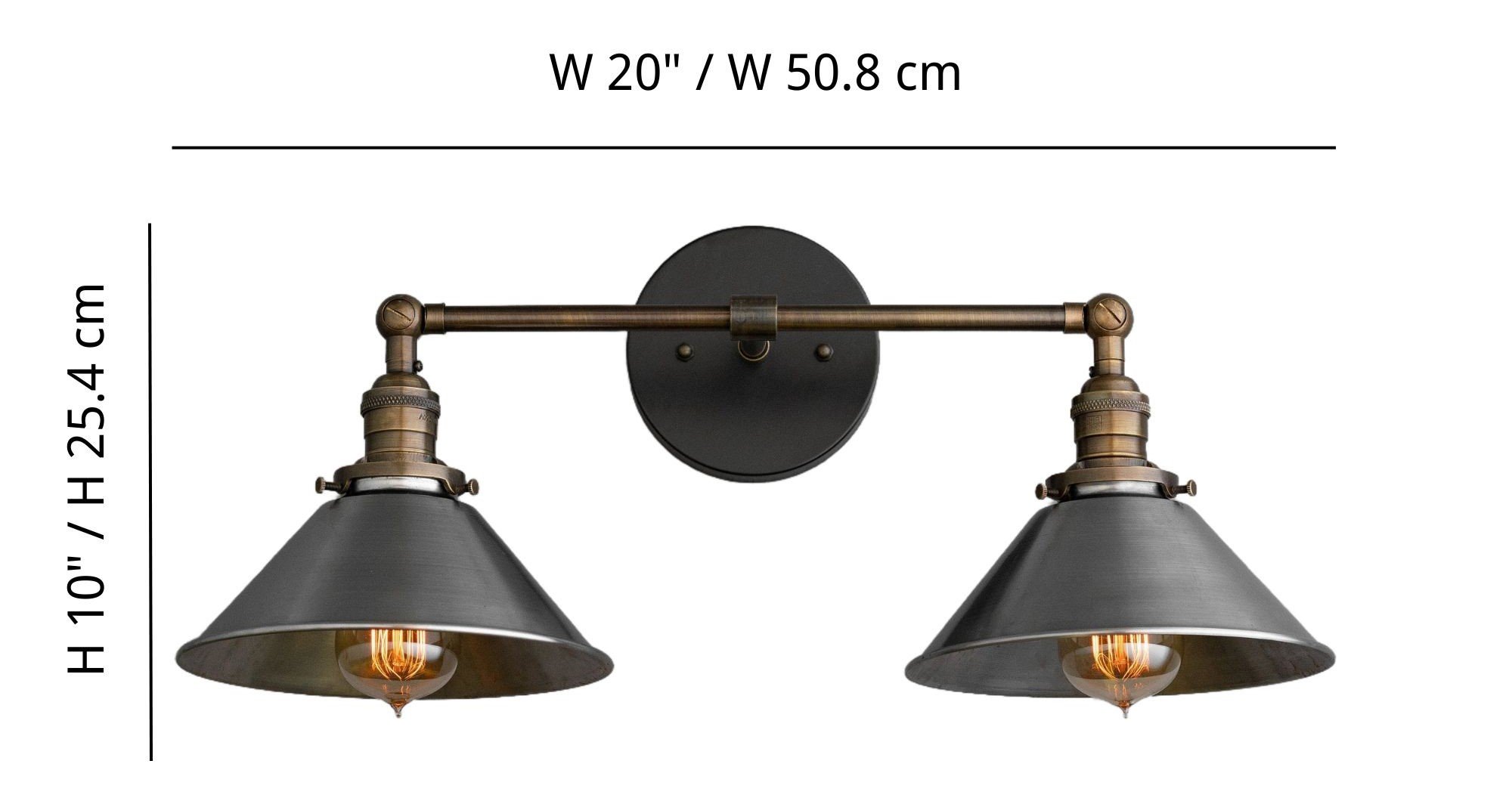 This industrial wall light features two tapered metal shades and sturdy mechanical-inspired arms with a circular base. Its raw, vintage aesthetic adds character to loft apartments, hallways, and commercial spaces like cafes and restaurants. The combination of rugged metal and warm lighting creates a unique industrial retro atmosphere.