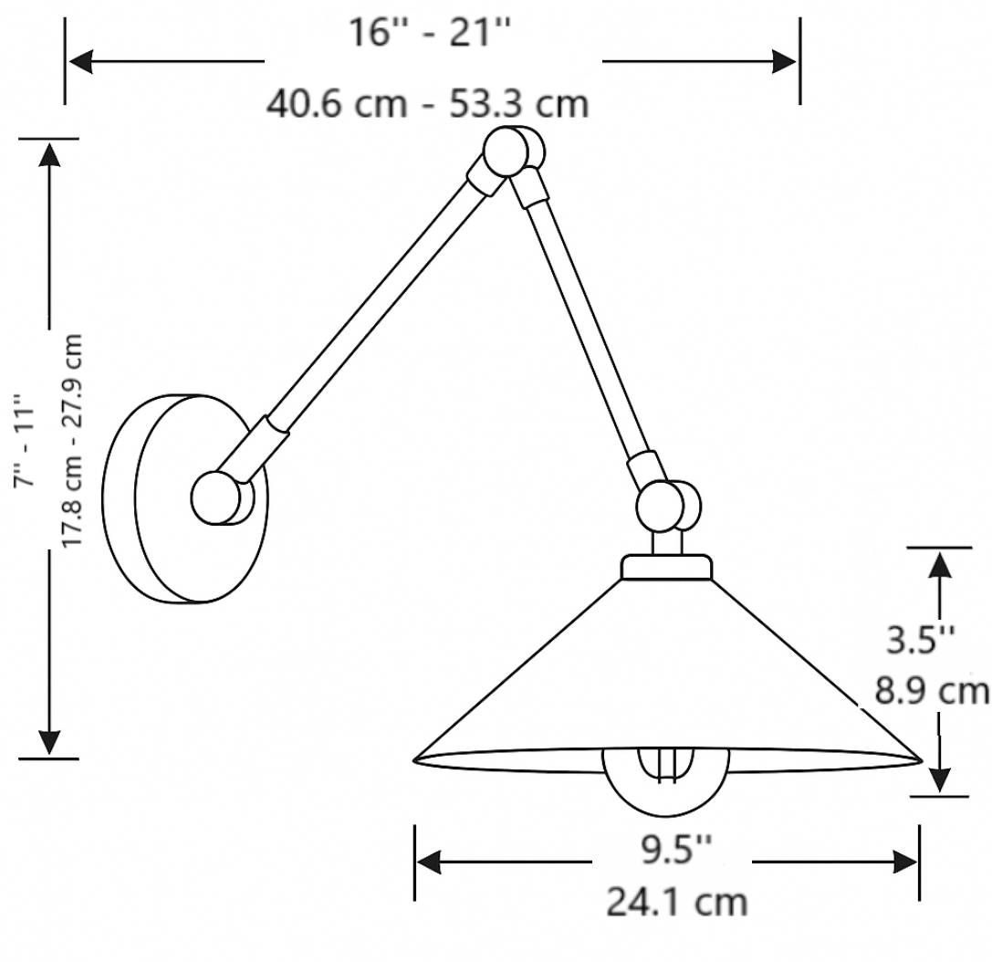 - Shade: H 3.5'' x W 9.5'' / H 8.9 cm x W 24.1 cm