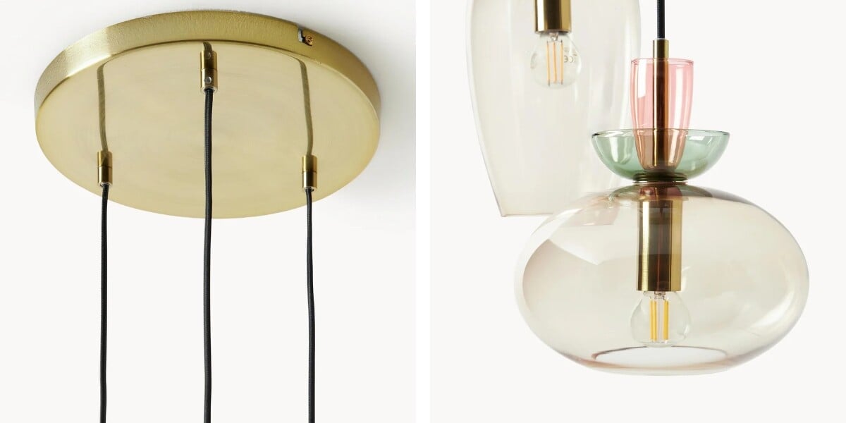 - Material: Glass, Brushed Brass-plated Metal