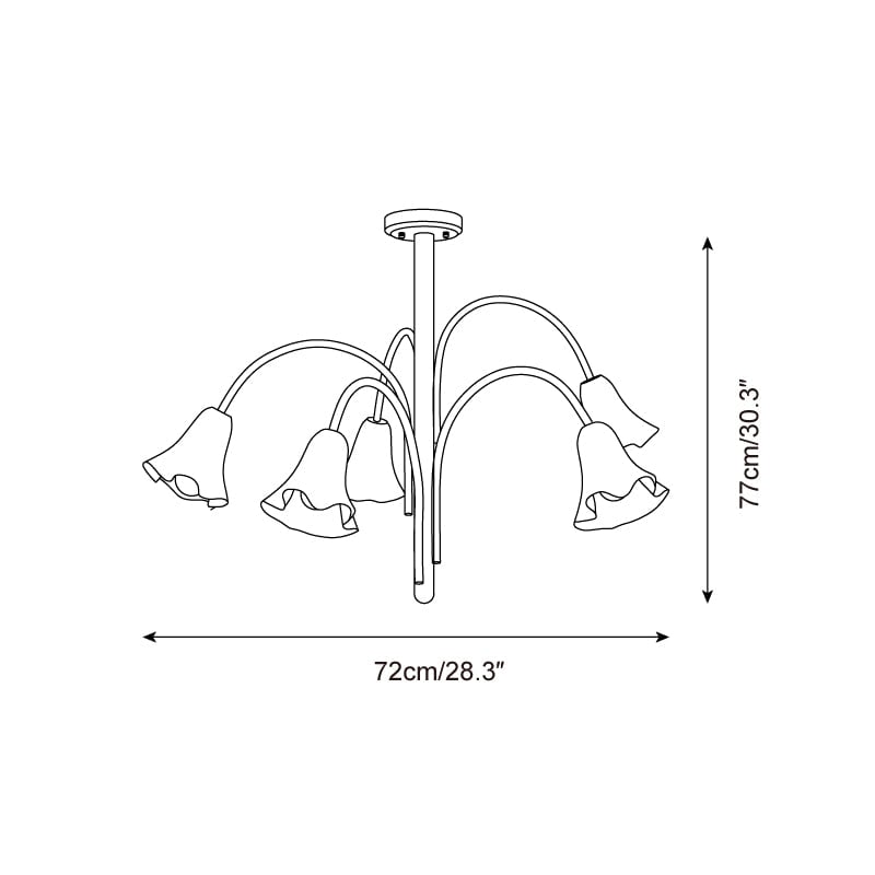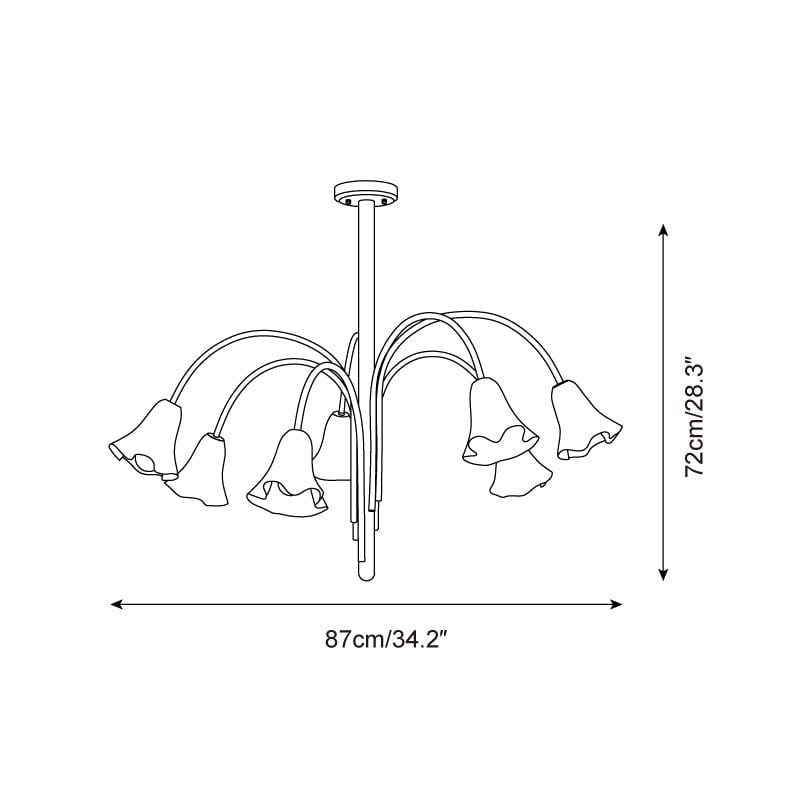 Infuse your space with romantic modernity using the Chandelier. Featuring arched brushed metal arms and hand-formed white glass shades, this fixture creates a soft, elegant glow. Its minimalist botanical design, inspired by lilies, adds graceful movement to dining rooms, entryways, or dressing rooms, balancing artistry with contemporary elegance.