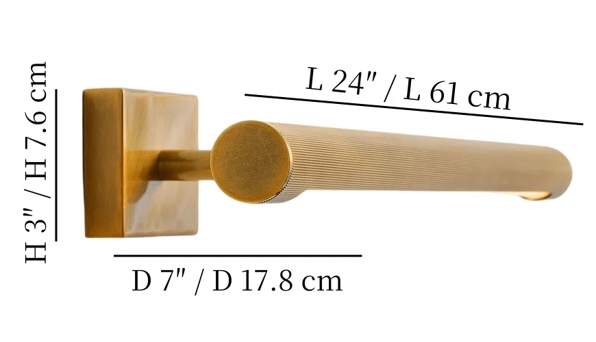 - L 24″ × H 3″ × D 7″ / L 61 cm × H 7.6 cm × D 17.8 cm